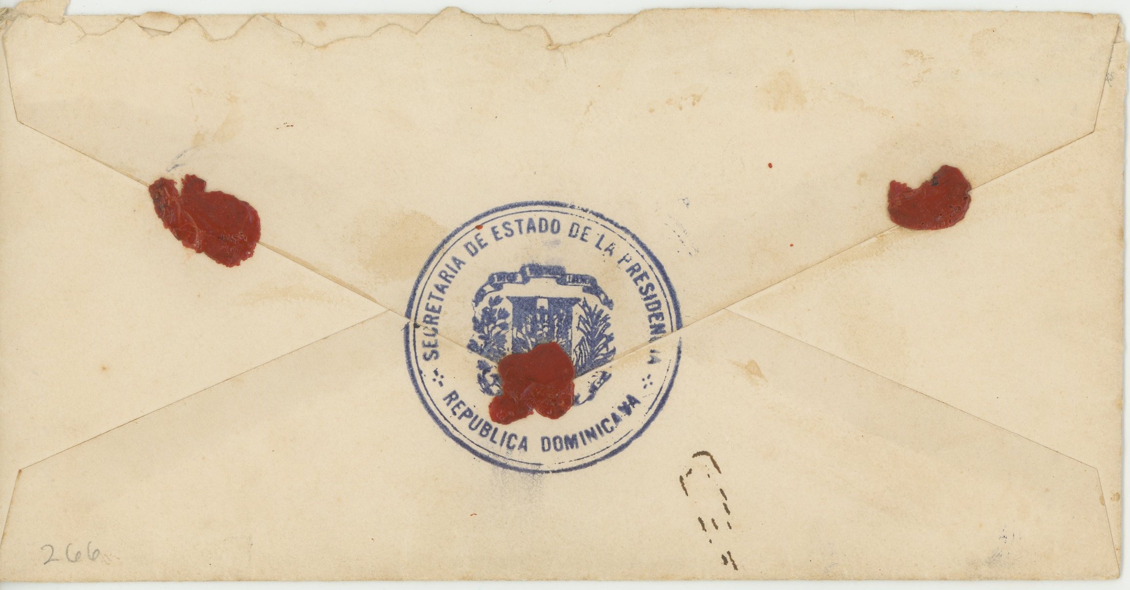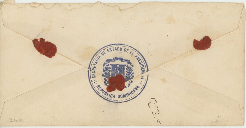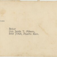 - Sobre del remitente: El Presidente de la República Dominicana para Don Jesús T. Piñero