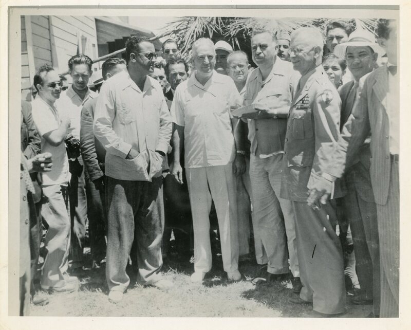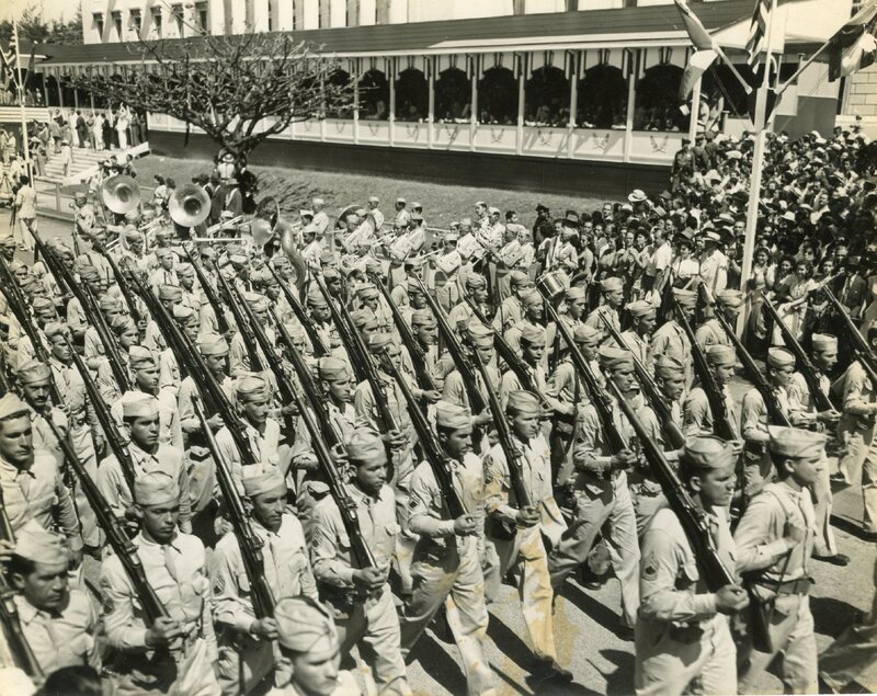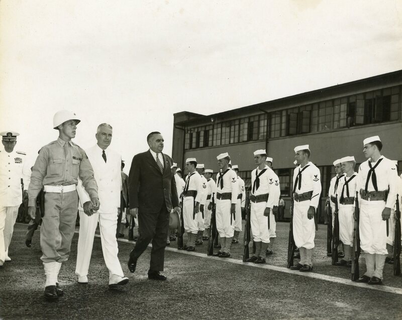 Piñero, Tugwell y Almirante Monroe revisan las tropas.