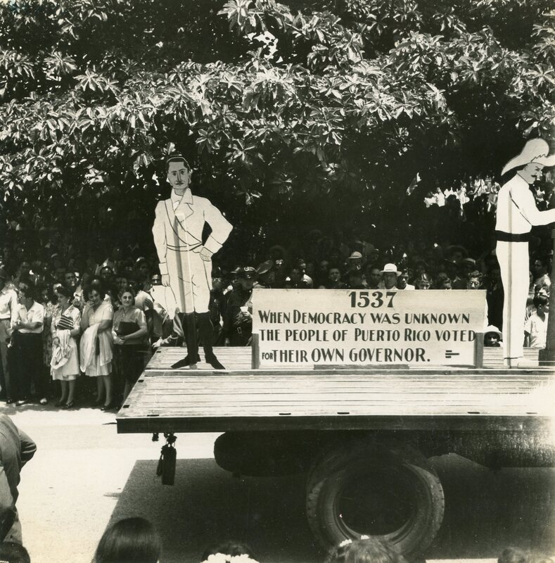 Carroza en honor al Gobernador Tugwell en desfile para la juramentación de Piñero.