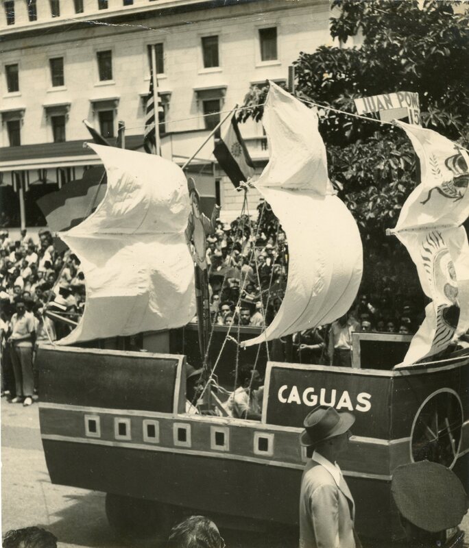 Carroza de Caguas en desfile para la juramentación de Piñero.