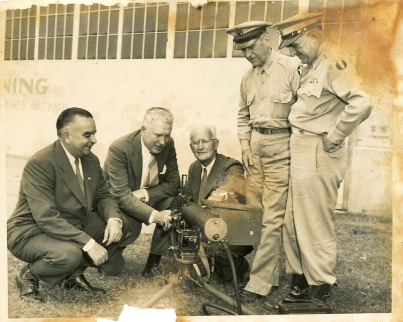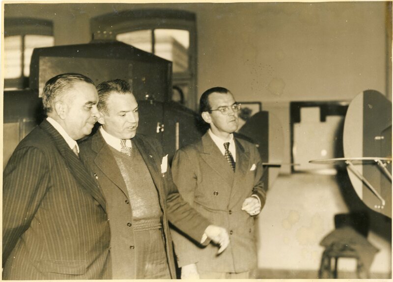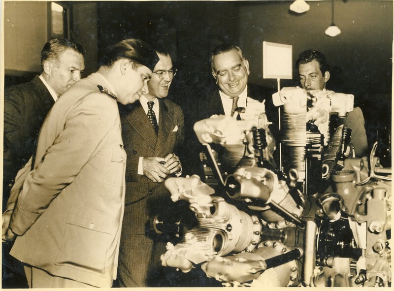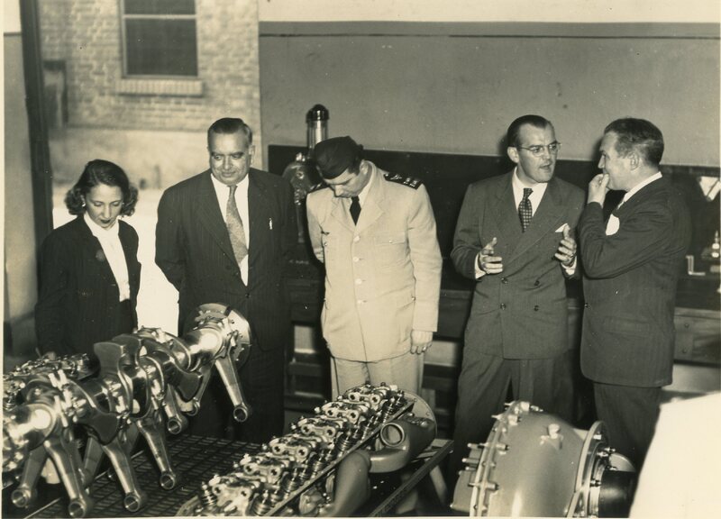 Piñero, una dama y tres caballeros en visita a una fábrica.