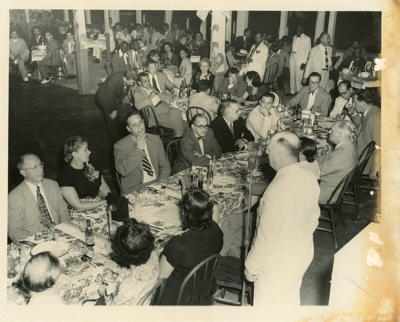Piñero en una actividad social. Antonio Fernós Isern habla al micrófono.