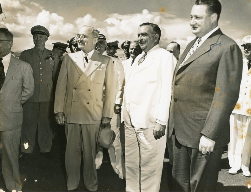 Piñero con Pres. Truman y Sec. Krug en aeropuerto de Isla Grande.