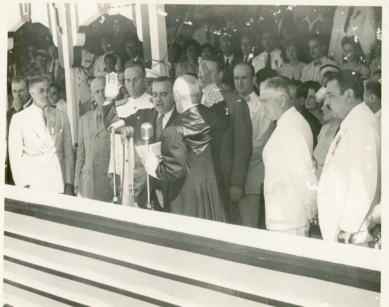 Gob. Piñero y otros en un balcón de La Fortaleza.