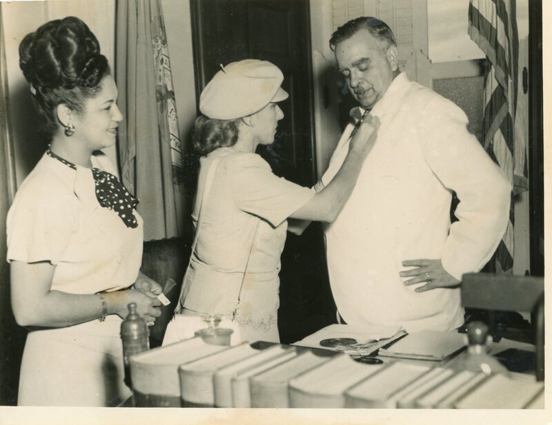 “Governor Piñero with members of the Puerto Rican colony in New York City”.