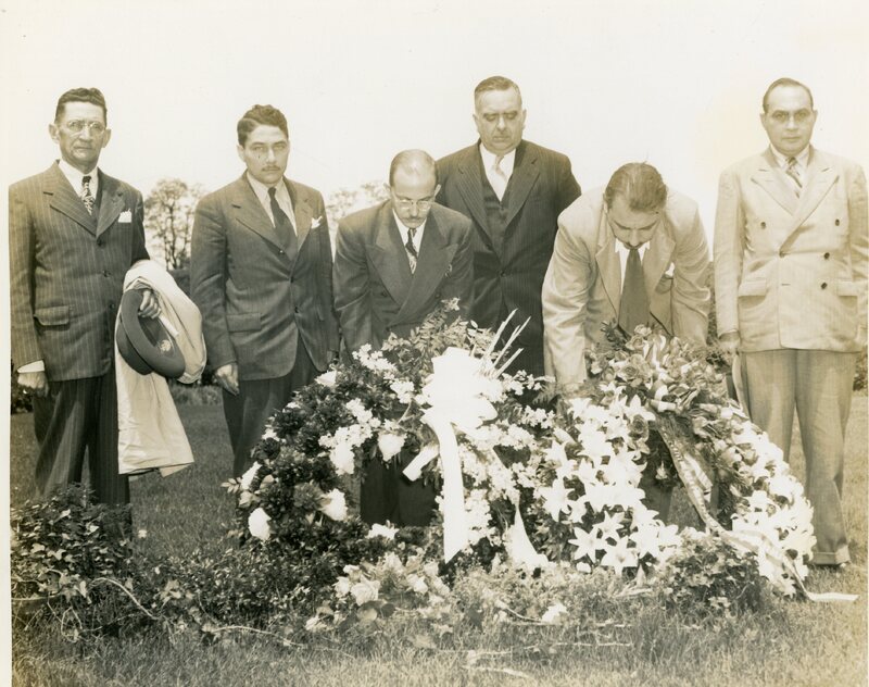 Piñero, L. Muñoz Marín, Bolívar Pagán y otros en la tumba de F. D. Roosevelt.