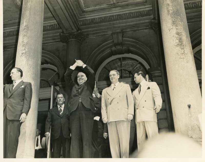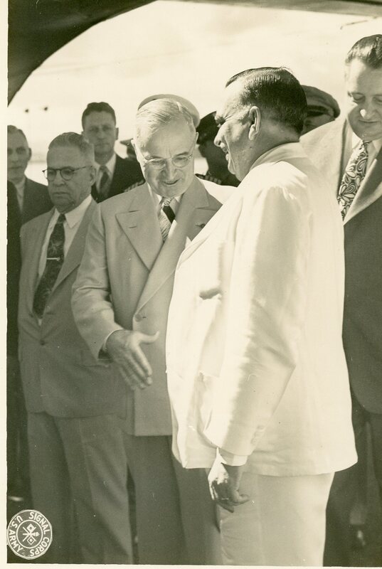 Presidente Truman y Gob. Piñero se dan la mano en aeropuerto Isla Grande.