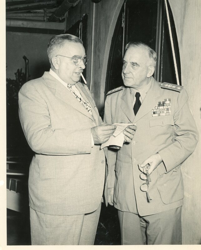 Gob. Piñero y Pres. Truman conversan en aeropuerto Isla Grande.