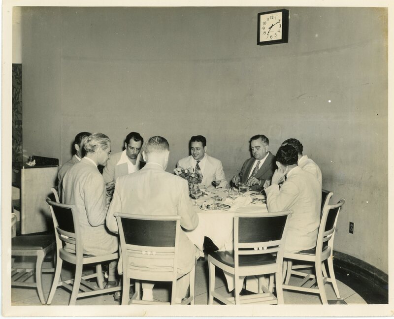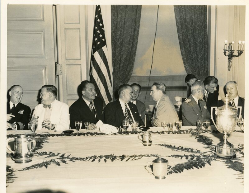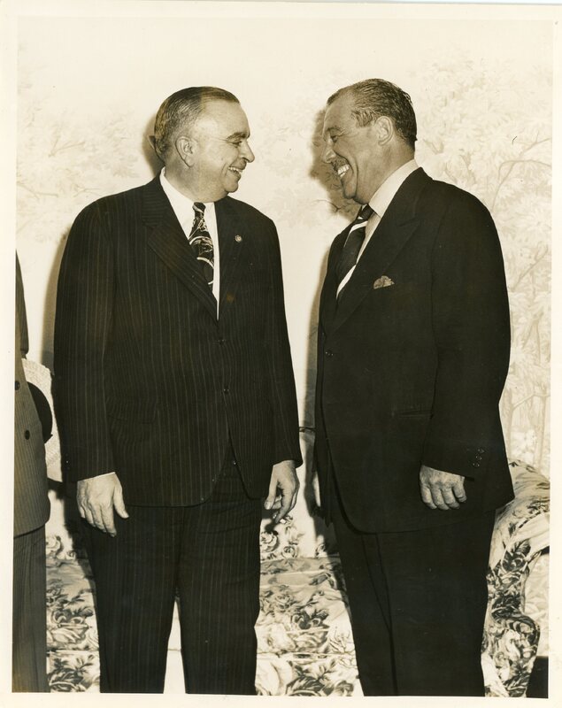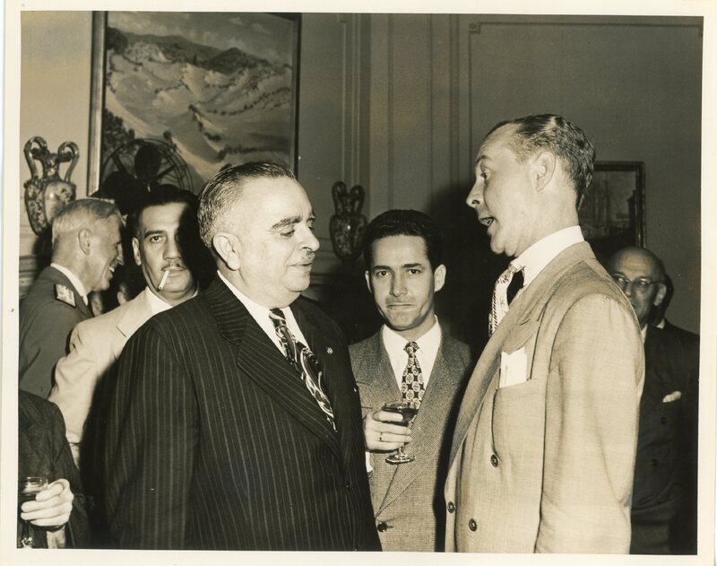 “Piñero speaks with Congressman E. Kiogh before luncheon in his honor”.