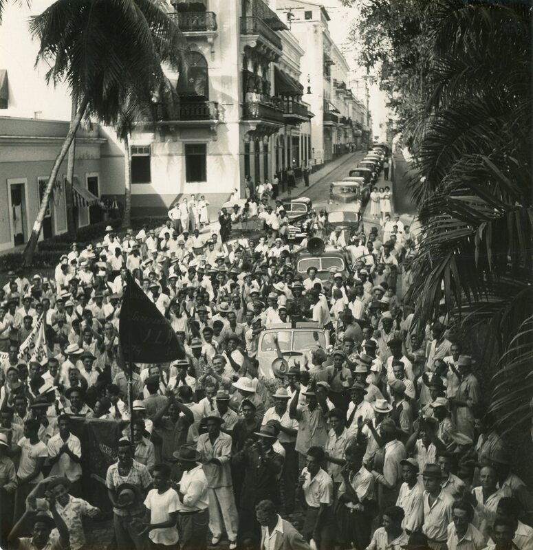 Marcha de obreros frente a la Fortaleza.