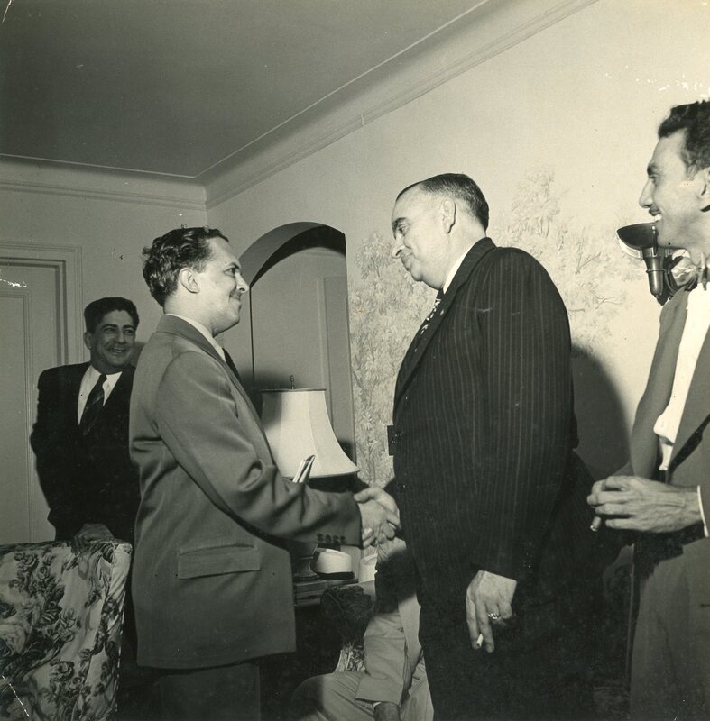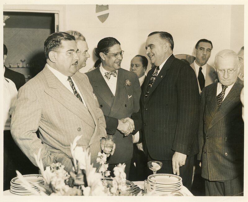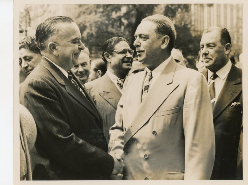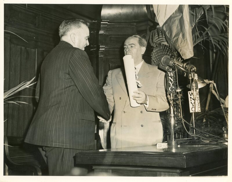 “New York’s Mayor O’Dwyer and Jesús Piñero shake hands at City Halls”.