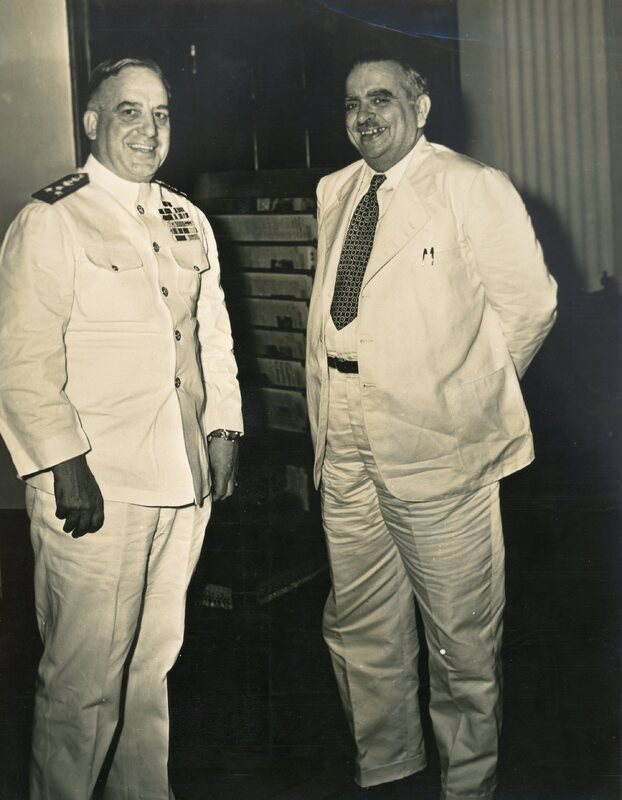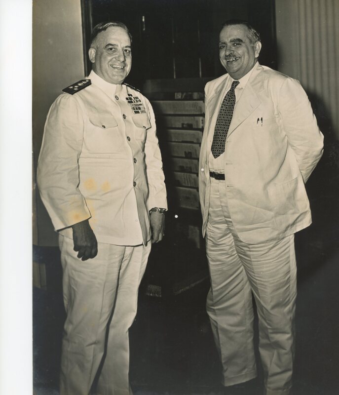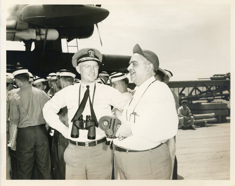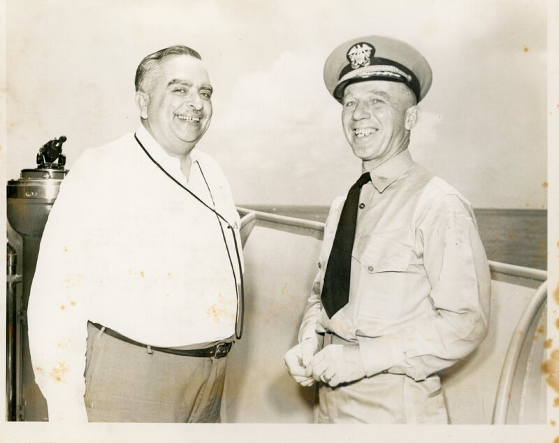 Piñero y Gobernador Gruening abordo USS Iowa.