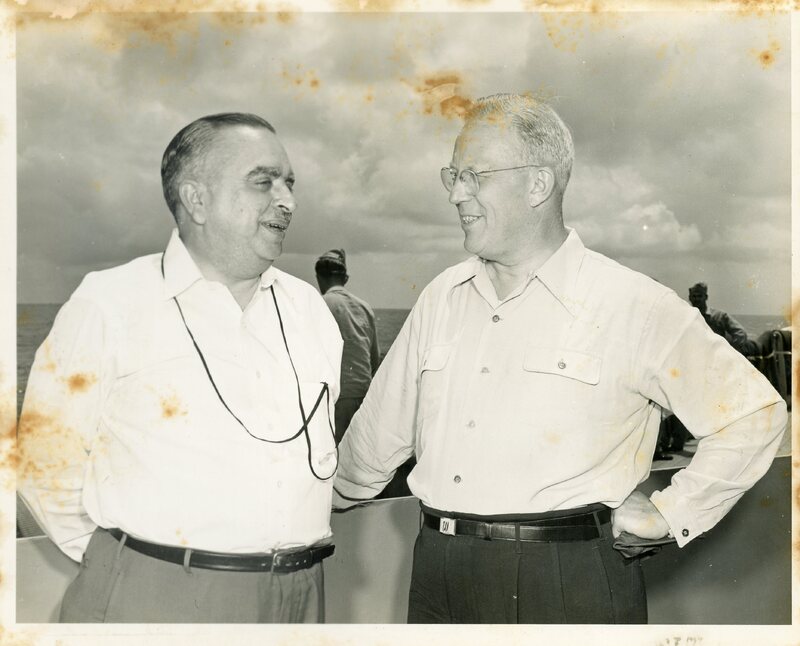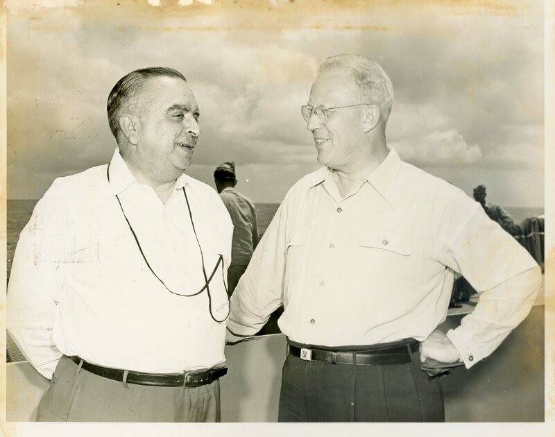 Piñero conversa con Gobernador Warren abordo USS Iowa.