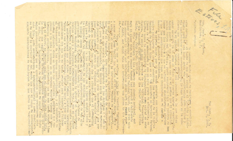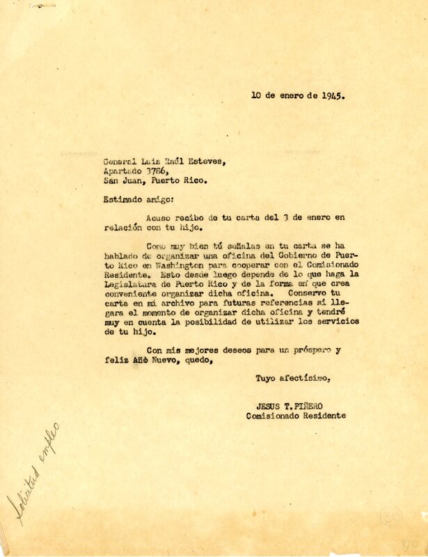 Correspondencia de Luis Raúl Esteves a Jesús T. Piñero.