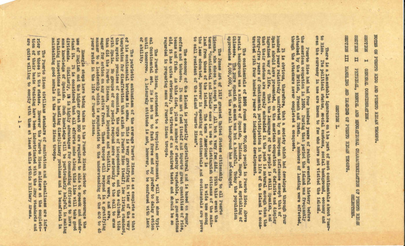 Informe: “Notes on Puerto Rico and Puerto Rican Troops” Primera Página