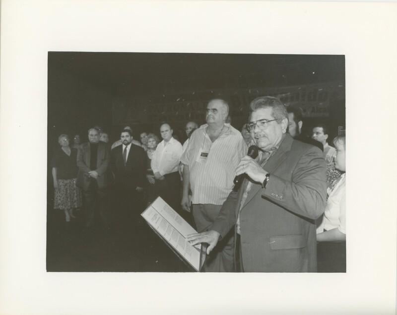 Alcalde Aponte lee proclama y José Piñero Bou y público escuchan.